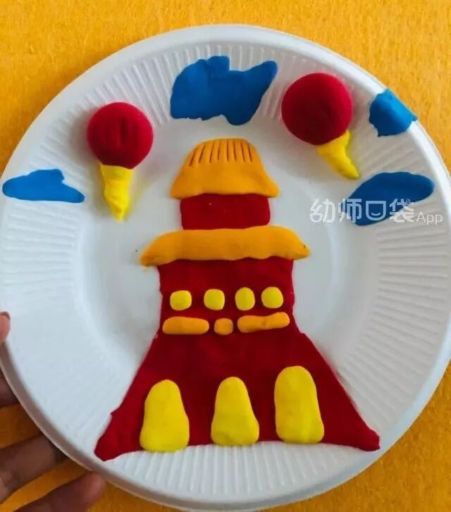 用橡皮泥来粘一个天安门,纸盘版迷你天安门来啦。