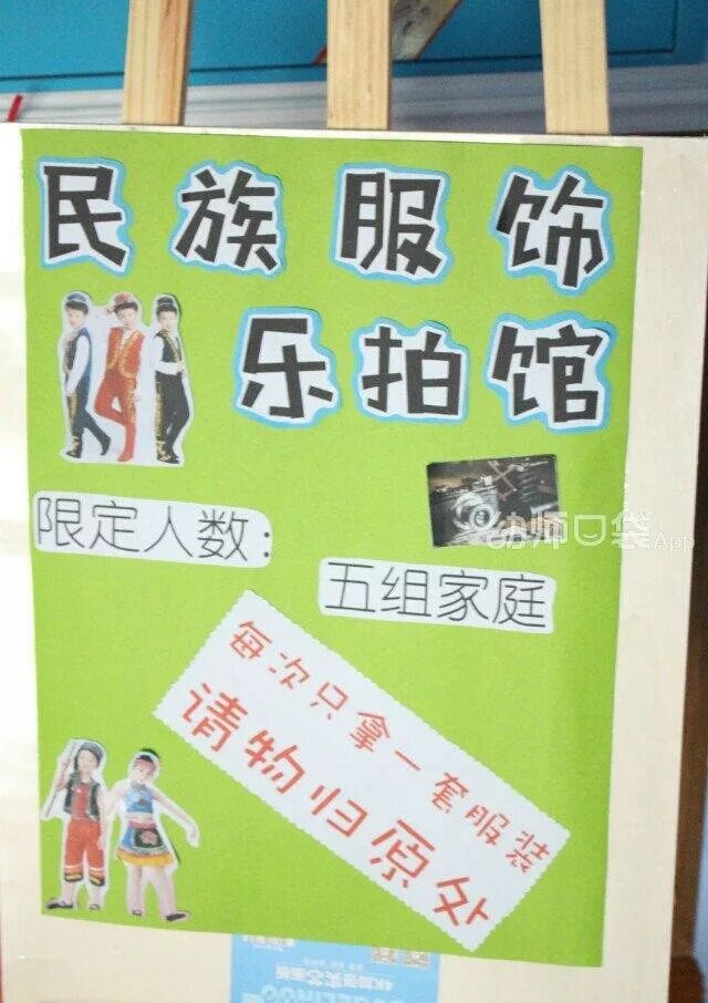在国庆活动日,邀请家长参与,和孩子一起欣赏并了解国家的民族服饰。