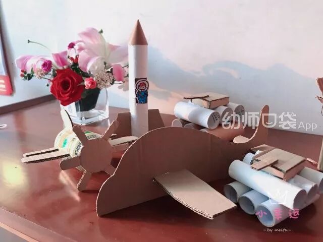 然后再从多种多样的活动,比如画天安门、拼搭飞机、制作手工礼花等,丰富孩子对国家的感性认识。