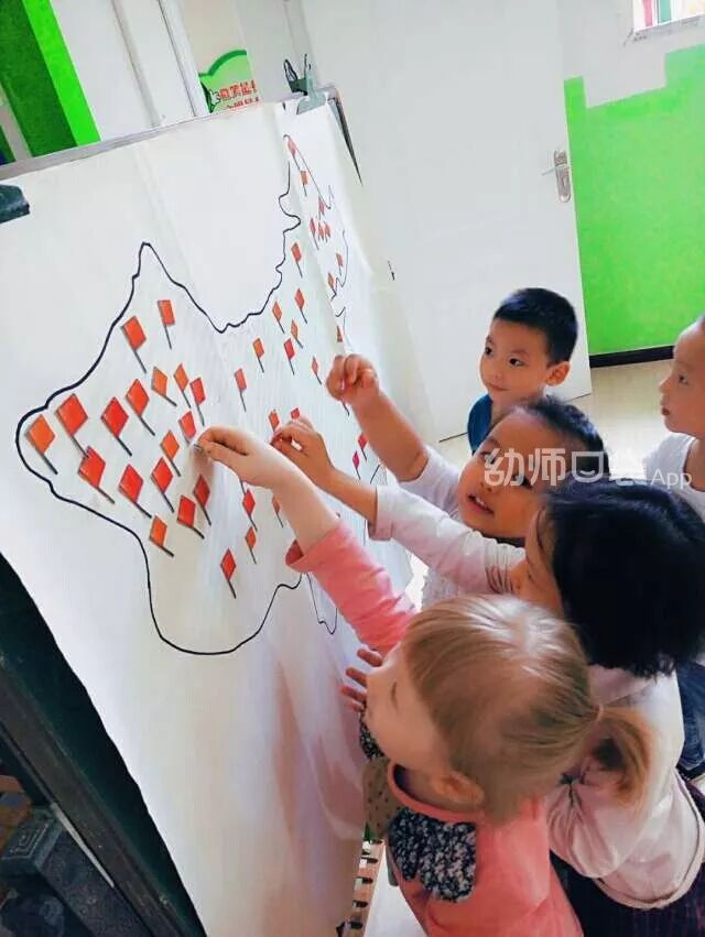 在环境创设中,老师可以用直观,有代表性的图片来布置环境,让孩子一看就明白这是我们的国家。