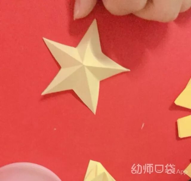 到了中班,老师可以提升难度,比如小朋友可以剪折出立体的五角星来做国旗。