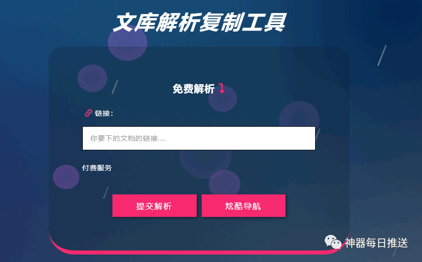 +- 首页 每日神器 正文 本期神器妹分享5个某度文库文档在线解析工具: 1.网页转换助手 http://html22.com/zh/ 2.北斗备用解析工具 http://api.bdwenku.com/ 3.南瓜文档抓取导出工具 http://bdwk.588230.com/ 4.文库下载器 http://wenku.tometu.com/ 5.某度文库文档解析工具 http://175.24.33.33:9999/baiduspider 热门抖音每日神器 每日神器 收藏 分享 链接