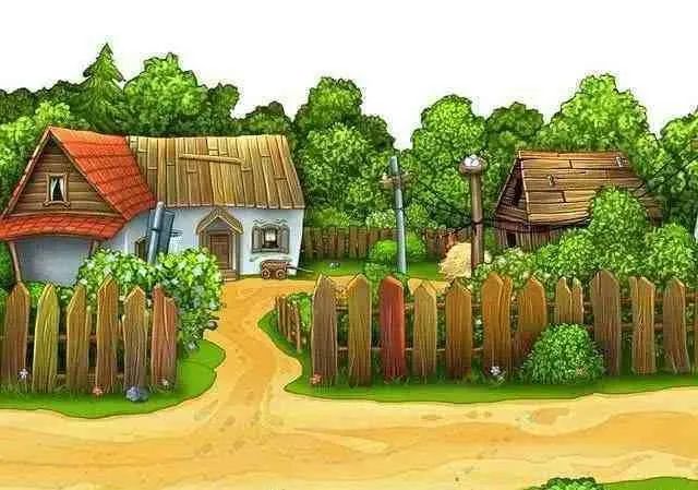 图上有红色的房子、弯弯的小路和绿色的树木,多美啊!