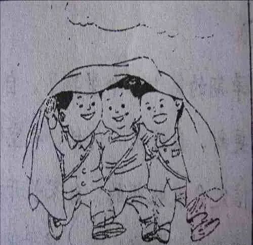 放学了,天下起了大雨,小明、小蓝和小天三人披着雨衣一起回家。