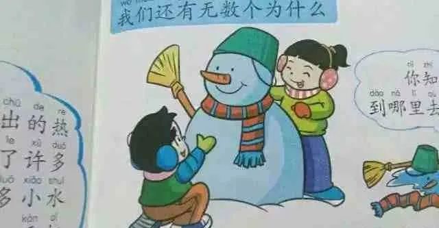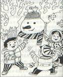 冬天到了,雪花飘满大地,小朋友们在雪地里堆雪人。雪人堆好了,小明又把自己 的帽子和围巾给它戴上。三个小伙伴围着雪人又跳又笑。