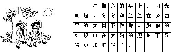 二、看图,请写明什么时间?有谁?在什么地方?干什么?他们在干什么?