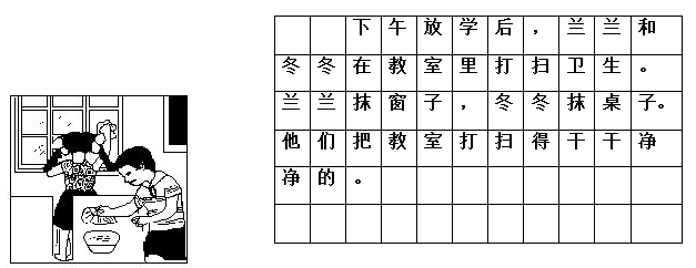 一天下午放学后,同学们一起打扫教室。他们有的扫地,有的擦桌子,还有的擦玻璃。一会就把教室打扫干净了.