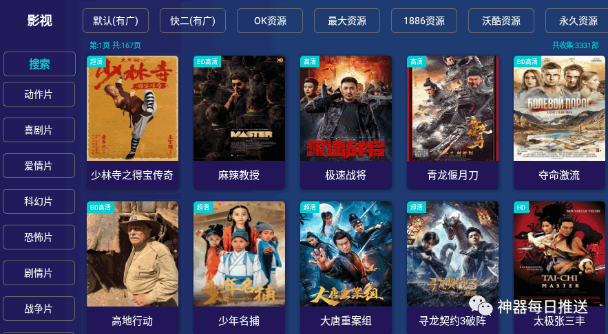 1.提供海量片源、影视源分类超精细,非常便于用户查找片源;