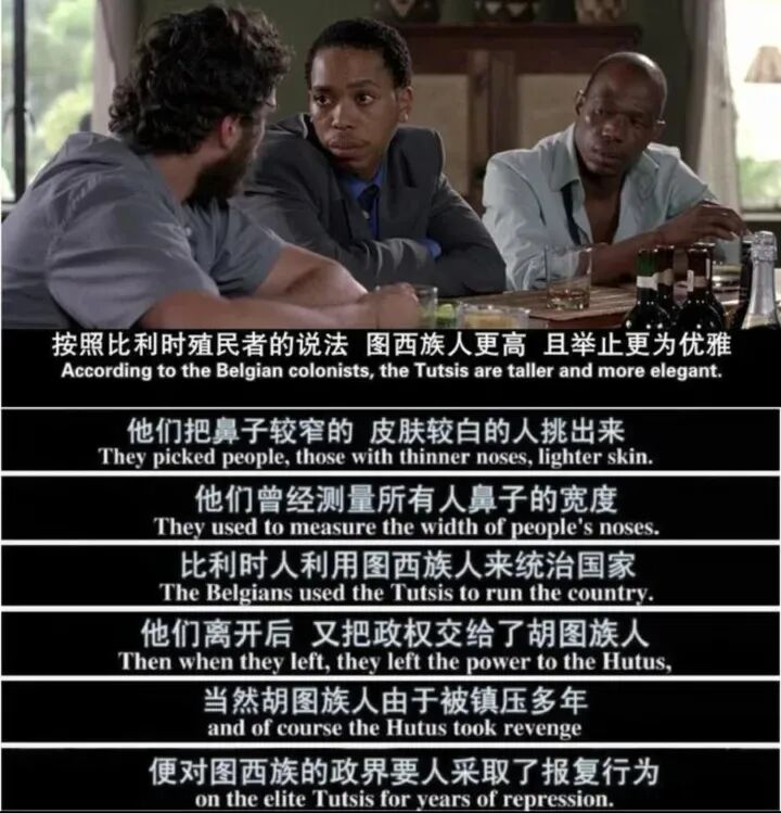 另一边,卢旺达首富也创建了胡图族的官方电台RTLM,宣扬胡图人至上主义,在电影《卢旺达饭店》开头出现的一段广播,就是来自官方电台RTLM: