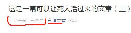 我们只要留意分辨这种人所传的教训,就可以看出他们是假的来。这篇文章的标题《这是一篇可以让死人活过来的文章》,让死人复活是神的大能,是圣灵的工作,你一篇文章算什么,竟然声称可以让死人活过来?这标题就已经显明出一种来自撒但的狂妄。