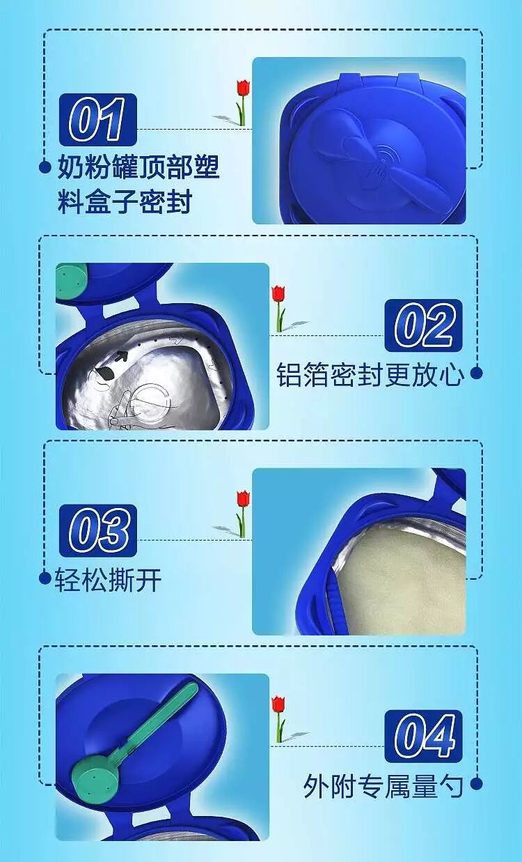 这次用的是创新型易乐罐,绝无二次分装、流水线自动成型,罐装奶粉和加盖密封一气呵成。