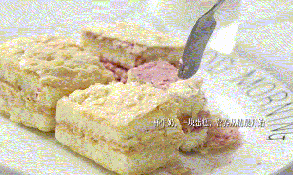 松脆的酥皮、酥软的蛋糕、软糯的奶油,夹杂着星星点点的葡萄干和果酱,层层分明却又相互交融,简直就是一块行走的“宝藏”。